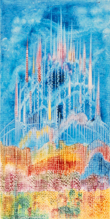 Look: Ask students: What do you notice when you first look at this piece? What do you think the piece is depicting? What do the colors mean? What feeling does this painting give you? Briefly introduce the artist, Eugene Von Bruenchenhein, and the subject of the painting, the Northern Lights/Aurora Borealis.